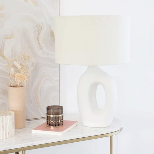 - Il est plus rare de trouver une lampe posée au centre du meuble avec d'autres objets autour de chaque côté. Cela crée un effet triangle qui n'est pas nécessairement agréable à l'oeil sur un meuble communément rectangulaire.