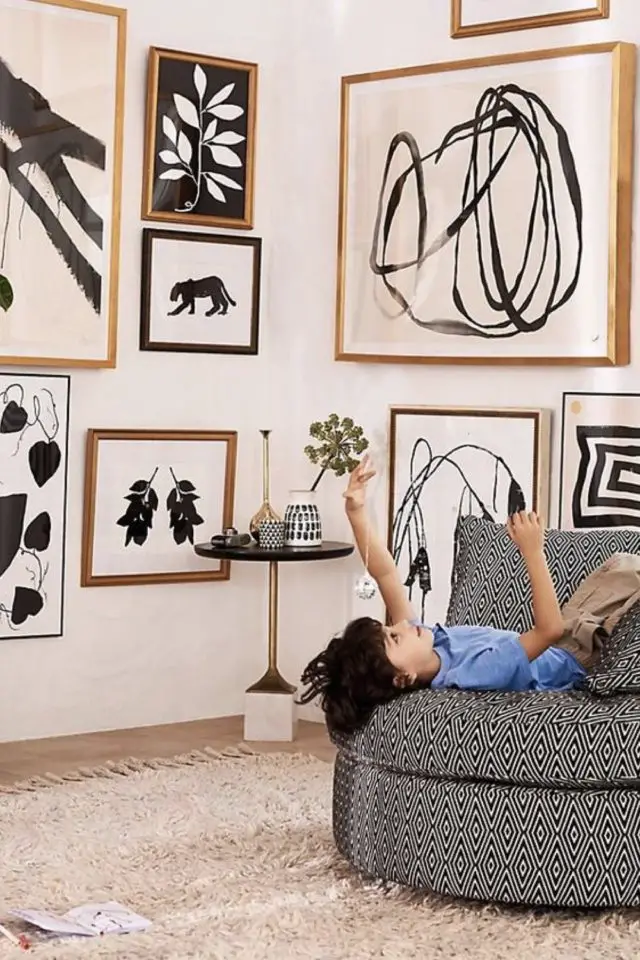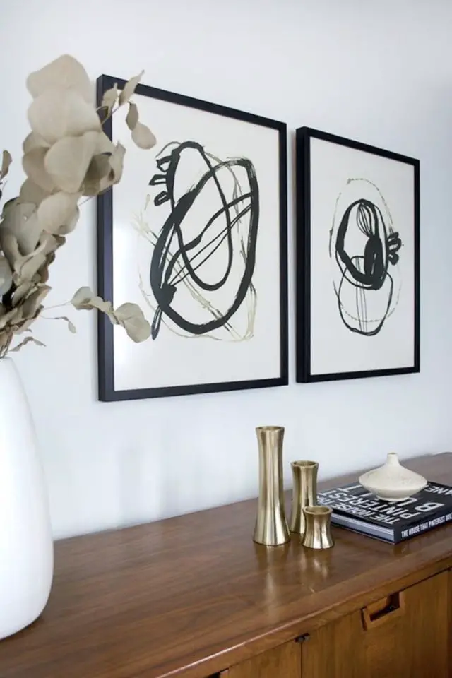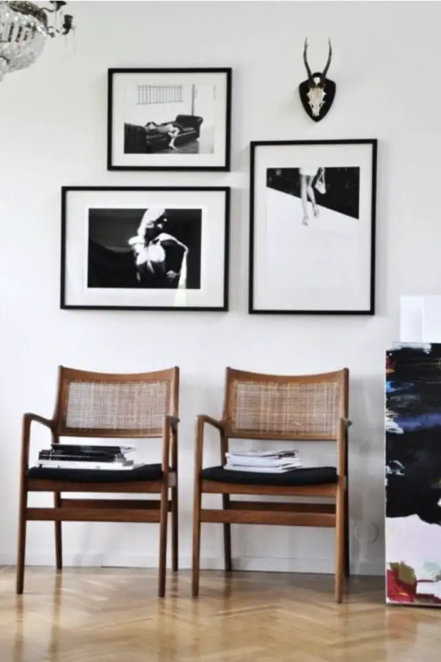 Changement de décor, on passe à quelque chose que je pourrais très bien avoir chez moi si j'avais un chez moi: une touche de noir. J'aime le noir, je le trouve facile à vivre. En revanche, je peux très bien comprendre pourquoi certain(e)s ont encore une appréhension à utiliser le noir en décoration. Le plus facile c'est l'utiliser avec parcimonie, en petite touche. Cela apportera une certaine élégance à votre décor. Le noir va aussi mettre en valeur un élément décoratif, une forme, un détail... Cette fois, j'ai eu envie de vous proposer une touche (plus ou moins grande) de noir dans la déco murale. Ca peut très bien être l'encadrement de vos affiches, l'affiche en tant que tel, des photos en noir et blanc. J'aime le côté graphique qui s'en dégage tout comme la simplicité.