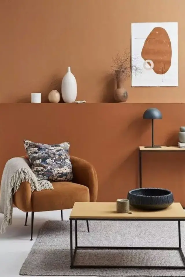 Il y a un côté chic et moderne qui se dégage de l'ocre orangé. Je trouve qu'il se marrie à merveille avec des moulures murales classiques mais tendance.