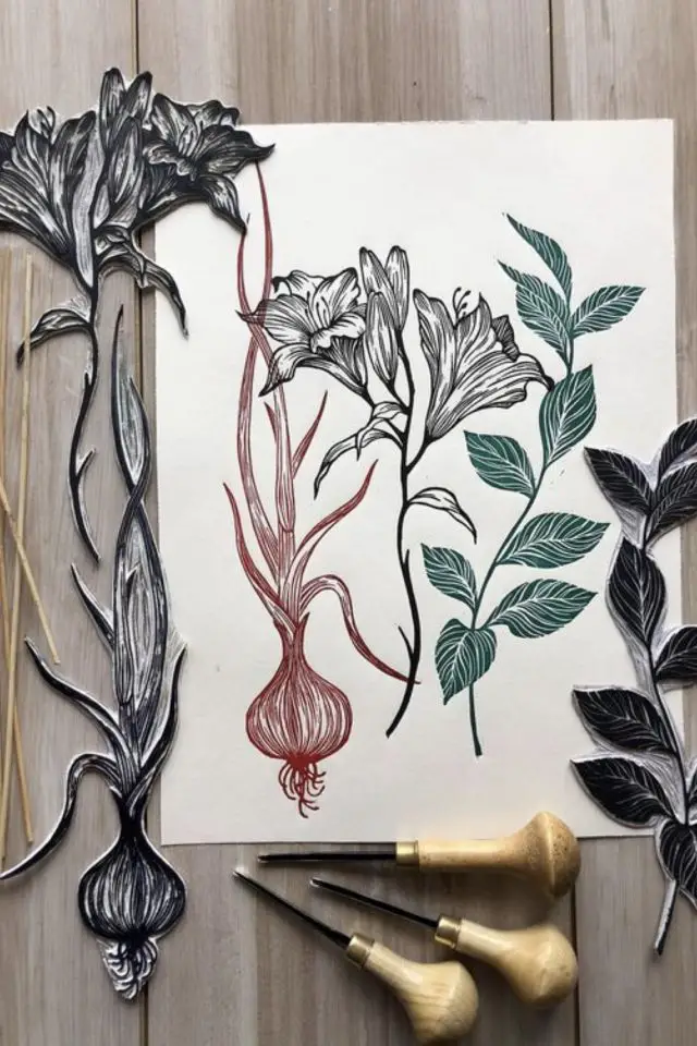 Le procédé de linogravure vise à reproduire un même motif, un même dessin plusieurs fois. Les projets répétitifs sont parfaits pour la linogravure. On peut l'utiliser pour créer: