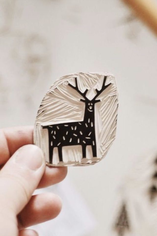 Comme mes amies ont des enfants, j'ai envie quand c'est possible d'adapter les loisirs créatifs que je vous propose pour eux. Cela vous donnera peut-être une idée d'activité pour les week-ends pluvieux ou les vacances. La linogravure demande une certaine force dans les mains et des outils qui peuvent être un poil dangereux dans les mains des petits. Néanmoins, on peut s'inspirer de cette technique pour faire des tampons avec les enfants. Pour remplacer la plaque de lino, il y a les gommes (celles qui effacent, qu'on a dans les trousses d'école) ou encore la pomme de terre. Demandez à votre enfant de dessiner directement sur la gomme des formes simples puis aidez-les à découper cette gomme avec un couteau rond. Les détails seront à découper avec un cutter si vous n'avez pas de matériel de gravure et donc il est préférable de le faire vous-même pour que votre enfant ne se blesse pas. Ensuite, il suffit d'appliquer de la peinture sur la gomme et de s'en servir comme tampon.