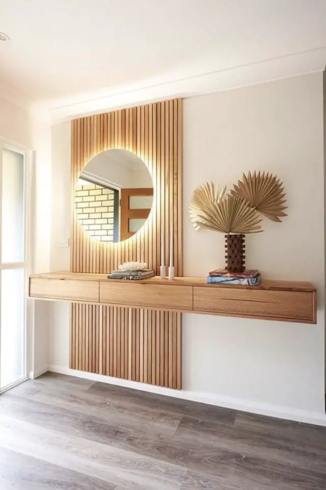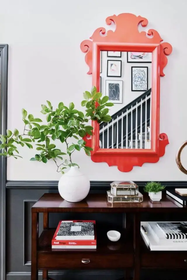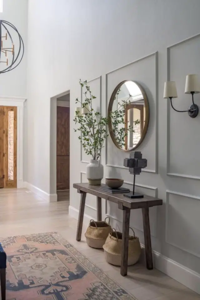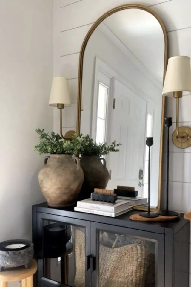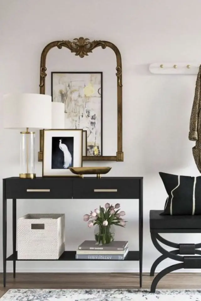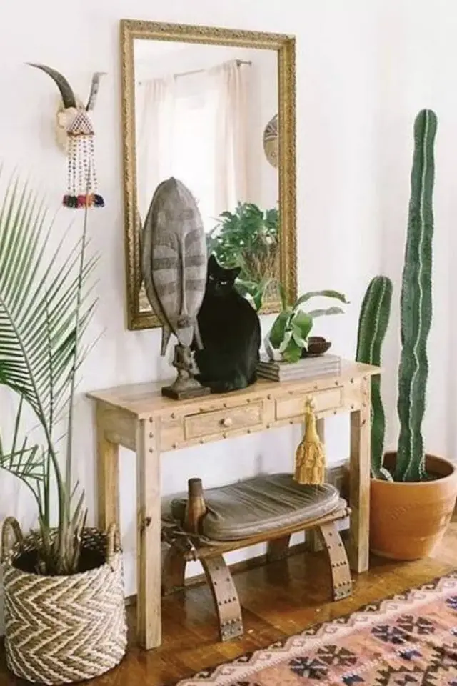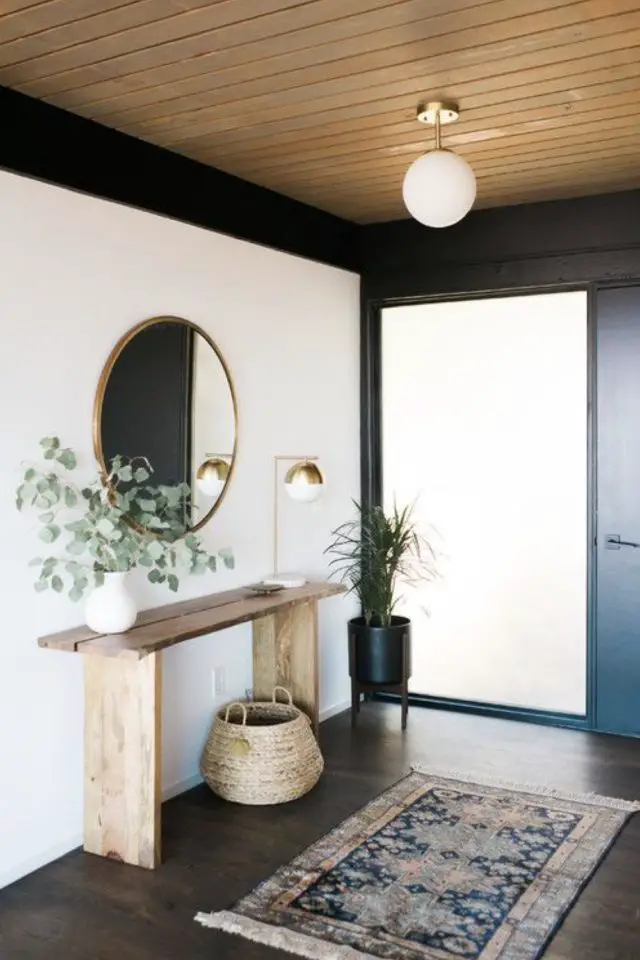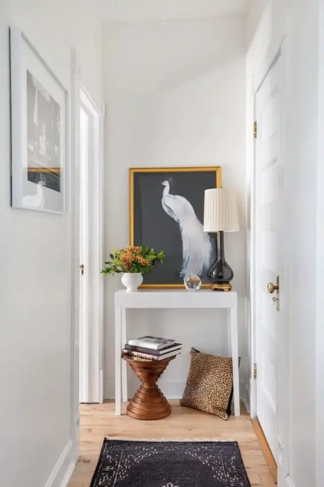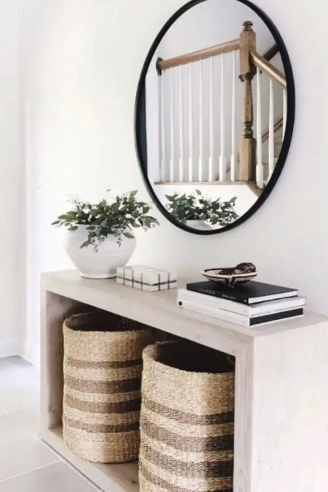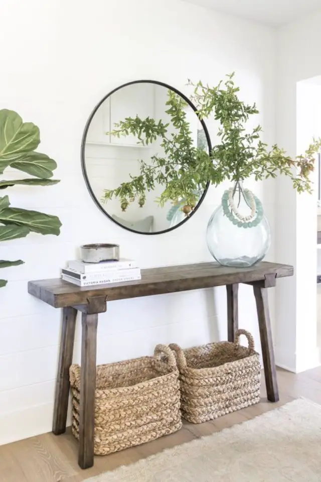 - Si vous avez un peu de place dans votre entrée ou le couloir, il est possible d'ajouter de la décoration à côté de la console: une grande plante d'intérieur, un miroir plein pied, un porte-parapluie...