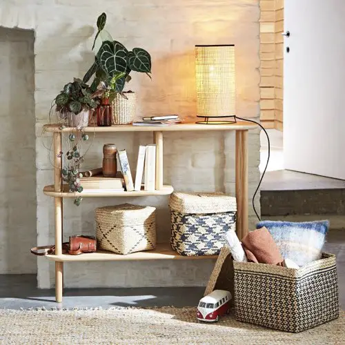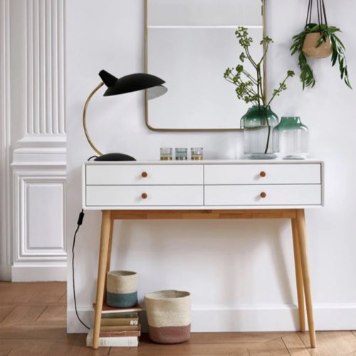 La console est un choix plus esthétique, plus léger. Elle offre moins de solutions de rangement - Si vous avez un placard dans l'entrée pour ranger les chaussures, vestes et sacs, vous n'avez pas besoin de grands espaces de rangement supplémentaires. Elle est pratique pour apporter une touche déco et poser des clefs ou le courrier quand on arrive chez soi.