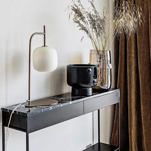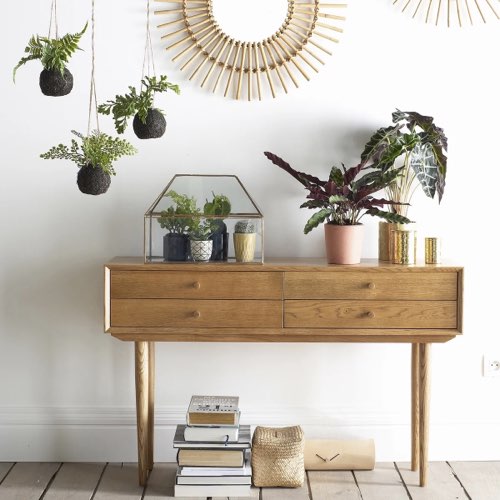 - La déco à poser sur la console: un vase avec un joli bouquet, une plante verte, une lampe pour un appoint de lumière, un vide poche pour que rien ne traine sur le meuble... Les possibilités sont vastes!