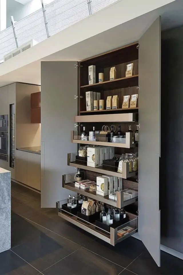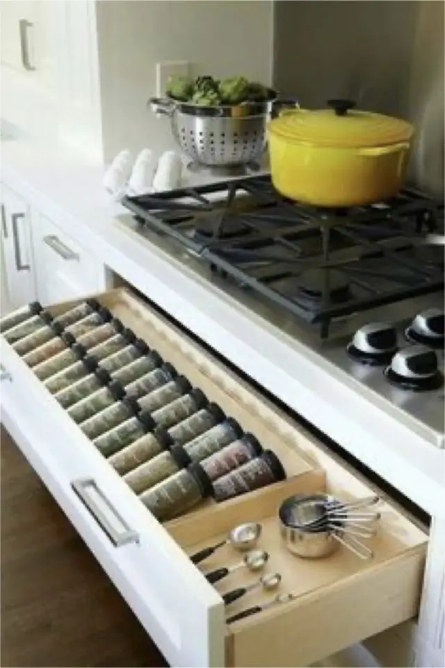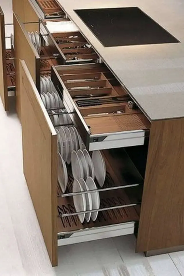 Je l'ai brièvement évoqué un peu plus haut, le meuble de cuisine est intéressant si on s'occupe de ce qui est à l'intérieur. Les tiroirs à l'anglaise par exemple sont des aménagement de meubles qui permettent d'accéder au fond du placard ou de la colonne plus facilement. C'est un ou plusieurs tiroirs dans un meuble. Il y a aussi les tiroirs pivotants pour les meubles d'angle.