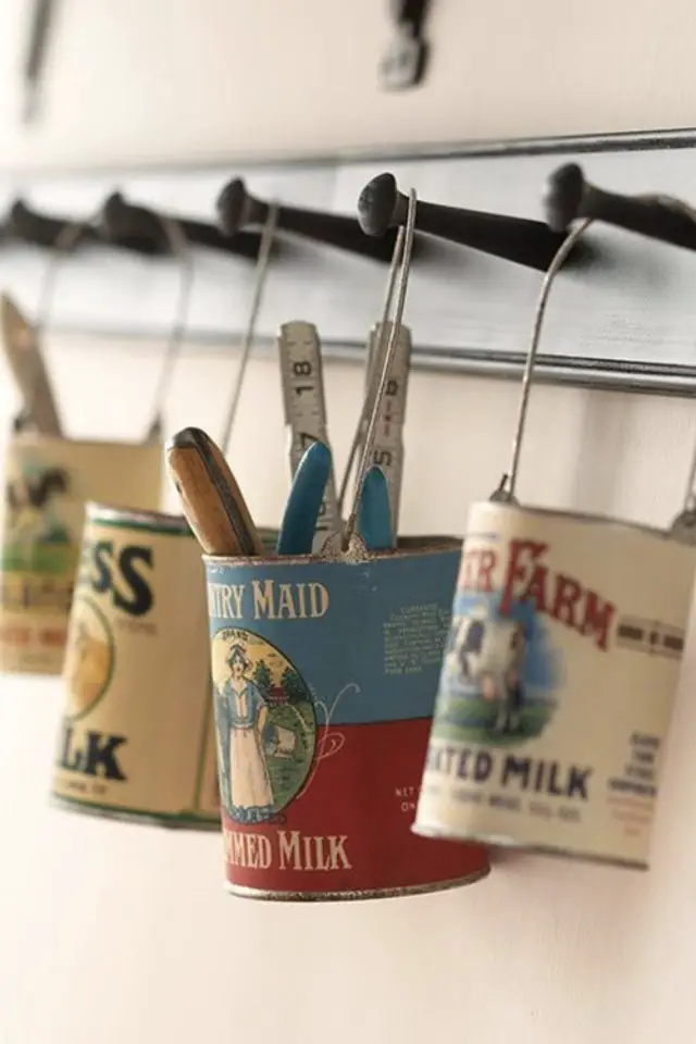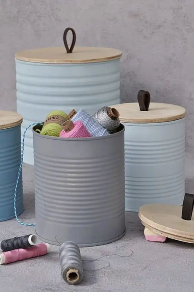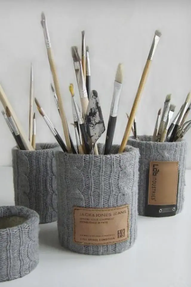 - Pots de rangement pour les crayons, les pinceaux, les couverts, les bobines de fil si vous faites de la couture;