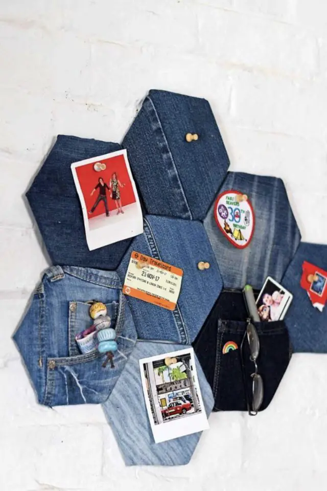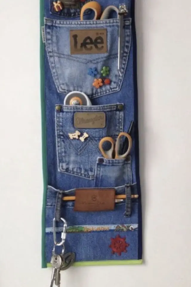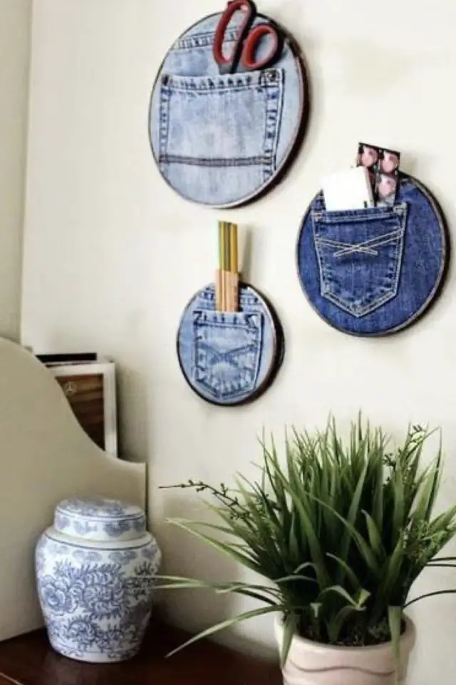 Il y a un côté assez ludique aussi à récupérer de vieux jean's pour créer de la décoration grâce aux poches. Elles peuvent être l'occasion d'avoir un appoint de rangement dans le bureau ou encore pourquoi pas dans la salle de bain. Elles permettent de donner une place au petit bazar qui traine au quotidien. Vous verrez à la fin de cet article dans mes inspirations que les poches de jean's peuvent trouver leur place à table comme pochette pour les couverts.