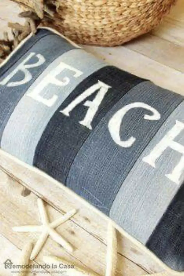 Le jean est un textile intéressant à plus d'un titre. Comme pour l'habillement, on peut choisir de le récupérer parce qu'il est solide et plus résistant que les tissus synthétiques. Sa couleur aussi - du bleu dans différentes nuances - peut être un élément qui s'intègre dans votre déco. Je pense notamment aux ambiances bord de mer où la couleur bleue est souvent présente.