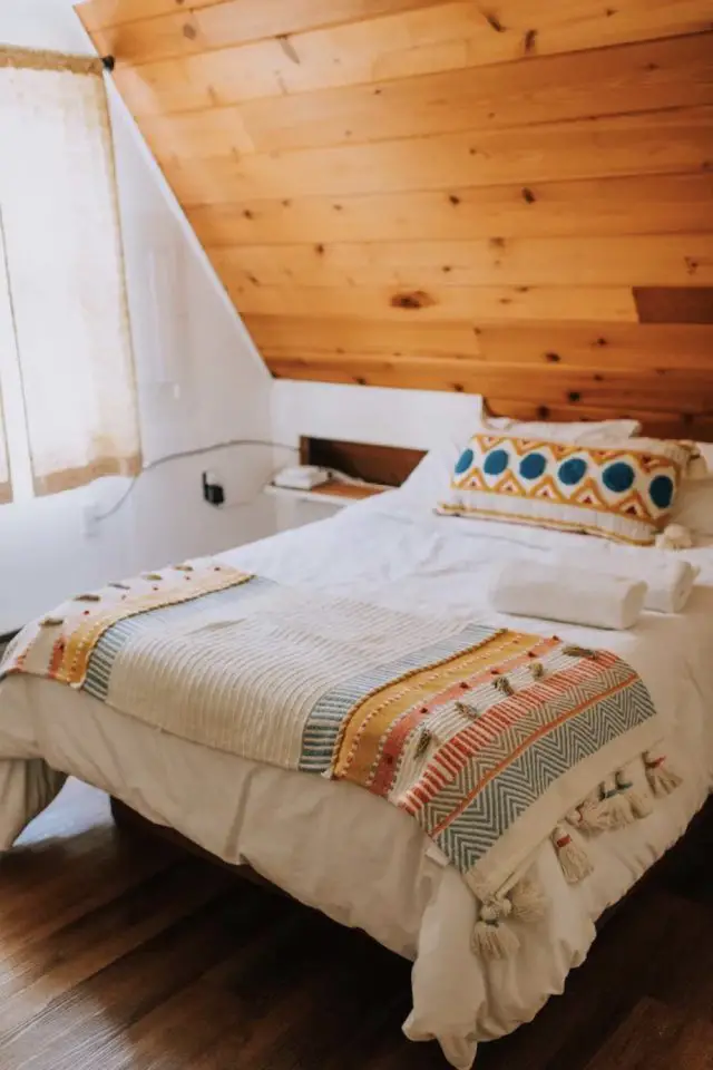 Ce chalet n'est pas le classique chalet que l'on connait dans les montagnes françaises ou les chalets qui font rêver au bord d'un lac au Canada. A l'instar des tiny houses, la construction en A a pas mal fait parler d'elle ces dernières années, essentiellement parce que c'est un type de construction plus abordable financièrement. Mais la construction qui nous intéresse aujourd'hui n'est pas neuve. Elle a plus de 50 ans. Le nouveau propriétaire a souhaité conserver et rénover cette structure qui sort de l'ordinaire pour lui offrir une seconde vie. Elle s'appelle d'ailleurs: "Camp Summer of '69" - année du célèbre festival Woodstock. Perso, je m'imagine bien profiter du cadre extérieur avec de la bonne musique et un café fumant.
