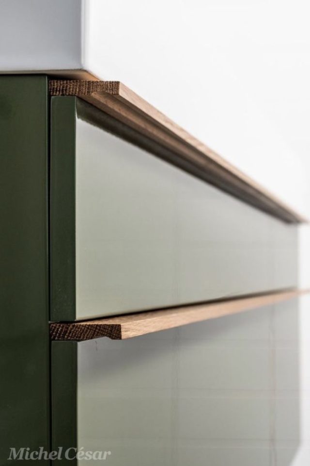 Plus moderne que la poignée classique, on a les ouvertures invisibles. On les retrouve généralement sur les meubles de cuisine et de salle de bain ou sur les meubles fabriqués sur-mesure comme le dressing. Il y a deux manières d'arriver à cette esthétique minimale et épurée. D'une part, on peut choisir un système avec gorges (verticales ou horizontales). Elles permettent de glisser les doigts pour ouvrir le meuble. D'autre part, il existe des systèmes qui s'ouvrent par simple pression sur la porte ou le tiroir. Pas de poignée, pas de boutons... rien de visible en extérieur pour un résultat moderne et minimal.