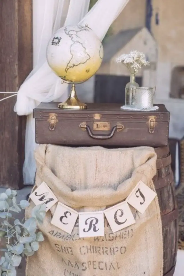 - Mettre un grand sac en jute associé à d'autres éléments déco pour recevoir les enveloppes et petits cadeaux;