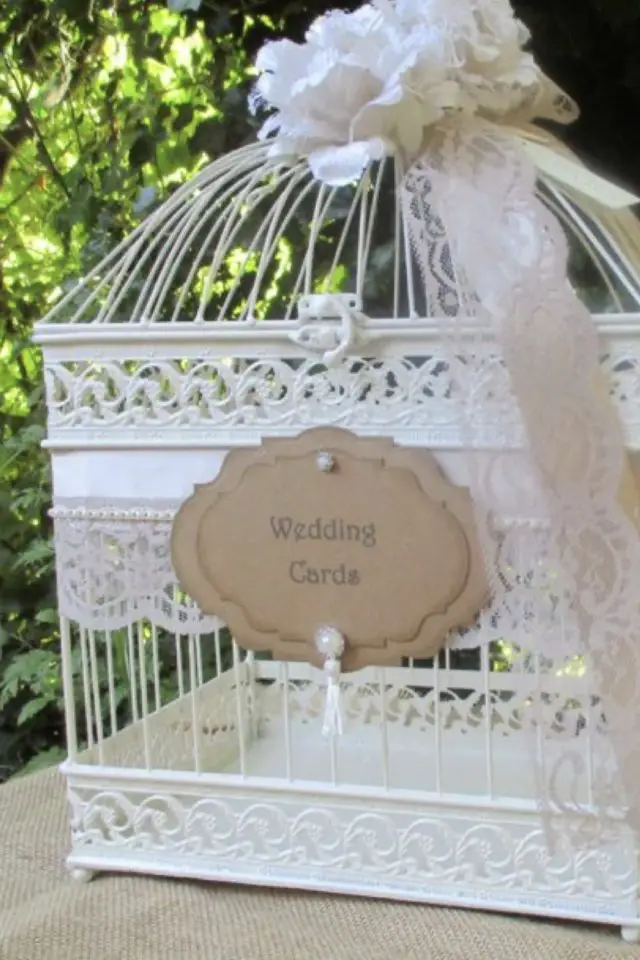 - Une cage à oiseaux vintage décorée de dentelle (mais j'avoue, j'ai du mal avec cette idée de cage...);