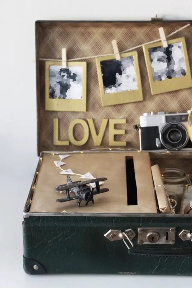 On sort de la déco de table pour passer à l'urne, accessoire incontournable qui dépanne bien les convives qui n'ont pas eu le temps de faire un cadeau de mariage et qui préfère financer l'un de vos projets ou votre voyage de noce. Et là, il y a pas mal de choix pour créer une urne à partir d'éléments récupérés et détournées de leur fonction initiale.