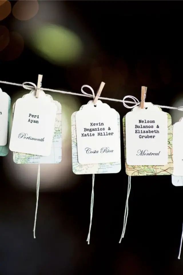 Dans la plupart des mariages, il y a un plan de tables et des marque-places pour que les convives sachent où s'asseoir. Ce petit détail peut lui aussi être fait de récup'.