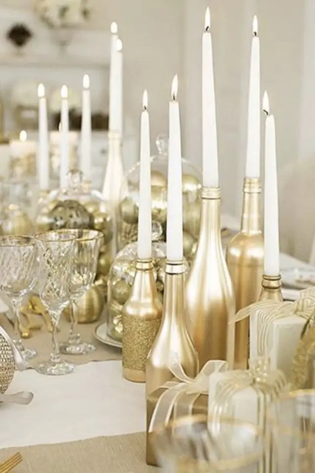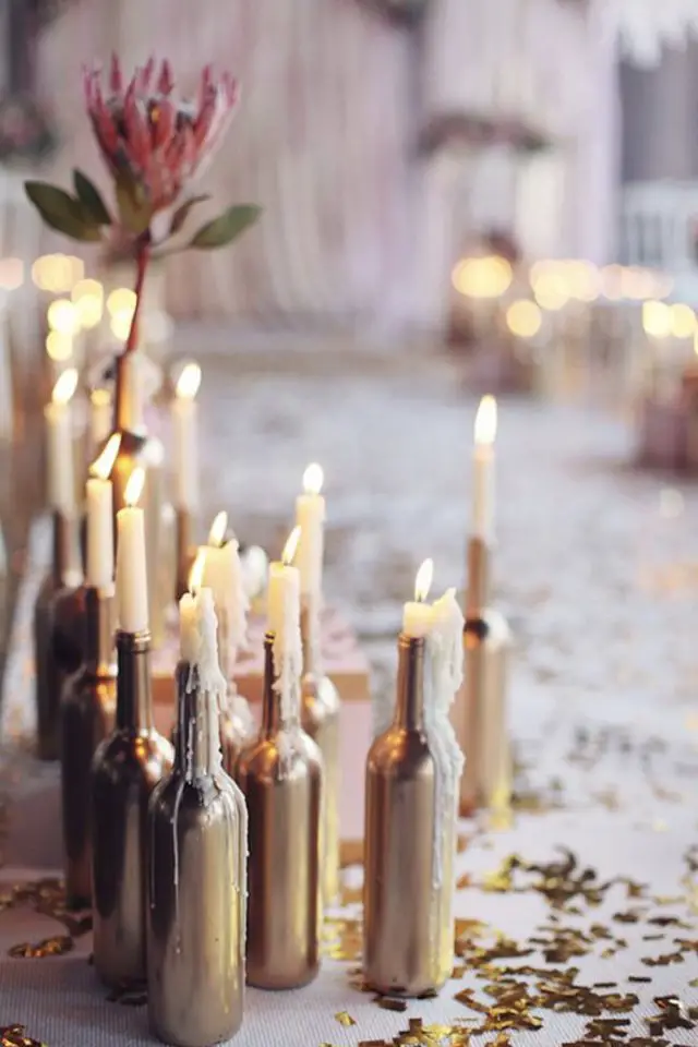 - Des bouteilles bombées comme support pour des chandelles (et pour un effet rétro, vous pouvez ajouter des coulées de cire sur la bouteille);