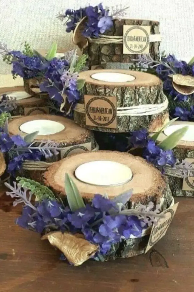 Les rondins de bois peuvent avoir un tas d'utilité dans la déco de mariage. On peut peindre dessus le numéro de la table. Il est aussi possible dans une veine naturelle de créer des numéros avec des bouchons en liège.