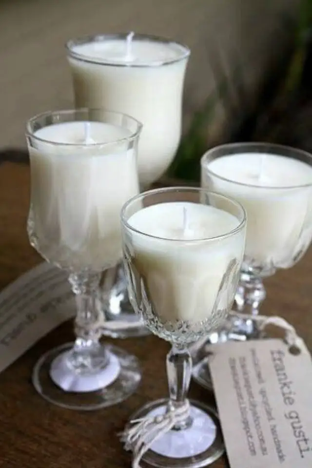 - Des verres à pied chinés en braderie comme contenants pour faire vos propres bougies...