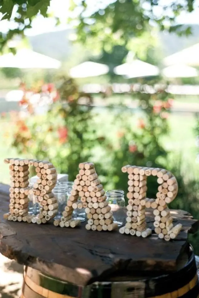 Les bouchons en lièges peuvent être une base pour créer des inscriptions qui aideront vos convives à se repérer. Il suffit d'imprimer chaque lettre sur une feuille A4 et de fixer entre-eux les bouchons en suivant le modèle.