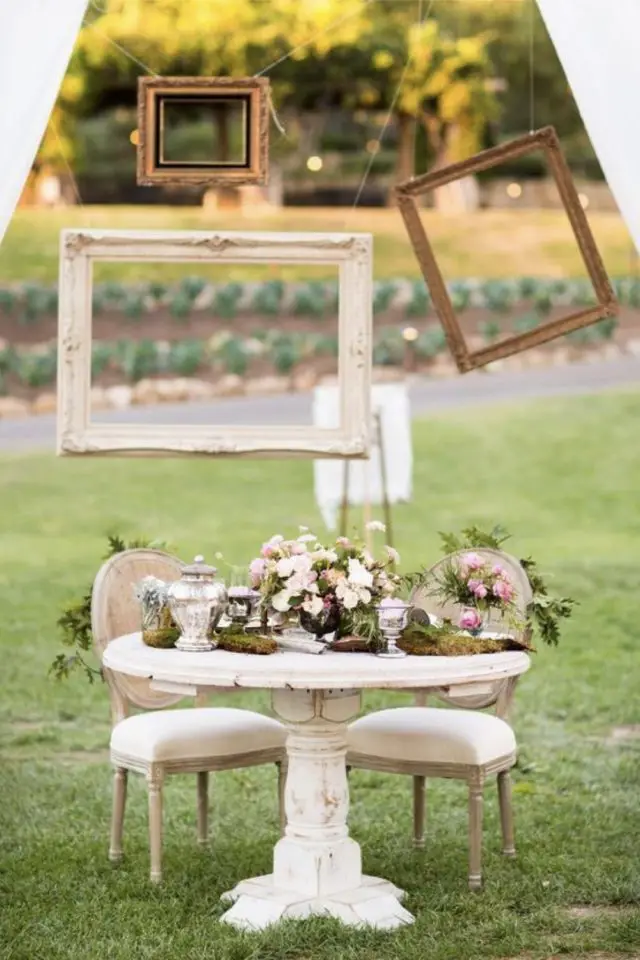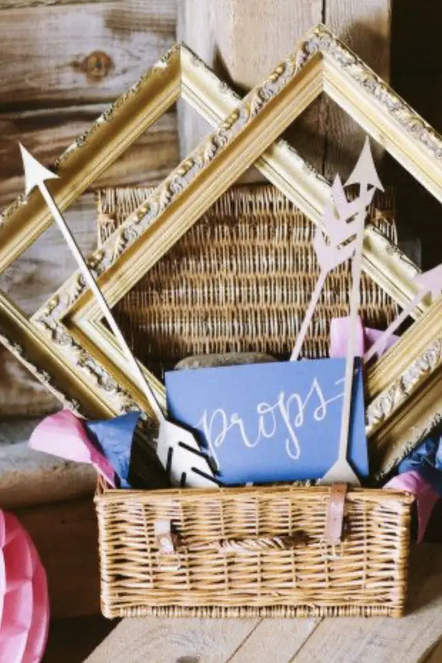 En vogue depuis de nombreuses années, le photobooth peut aussi être fait de récup'. Chiner de vieux cadres est une bonne base. On peut aussi chercher en brocante (ou dans le grenier de mamie) des accessoires pour que vos convives se mettent en scène. C'est créatif et c'est parfait pour créer des souvenirs uniques de votre union.
