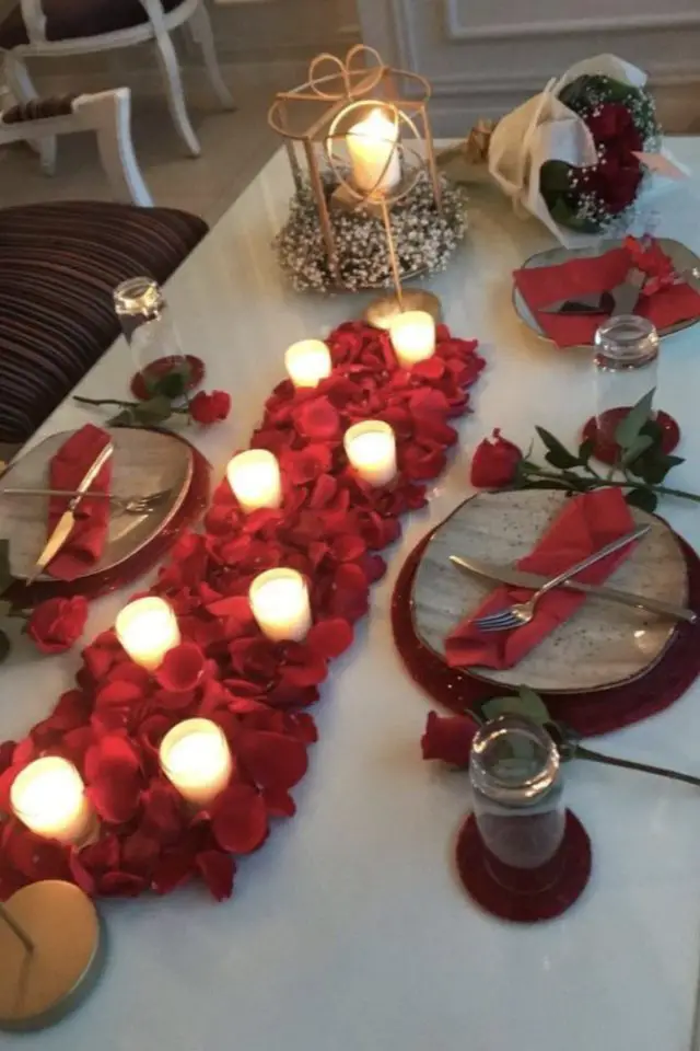 Splendides idées de déco pour un dîner de saint valentin. Que peut-on mettre dans le livret ou l’album posé sur la table? Un billet pour un week end à deux, un bon d’achat pour un salon de coiffure homme, des photos souvenirs, quel cadeau serait mieux approprié.