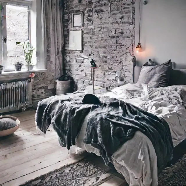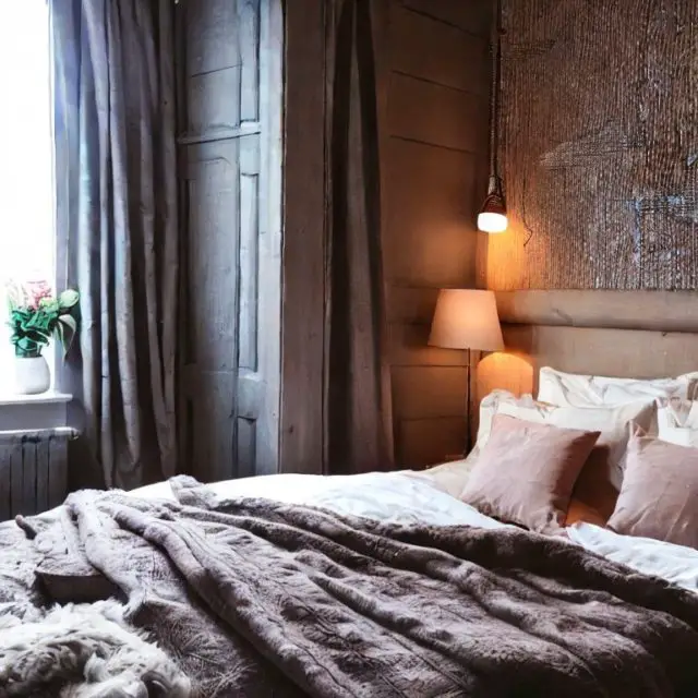 Les résultats proposés par l'Intelligence Artificielle ne sont pas trop mauvais dans l'ensemble, je trouve. On a bien des décors de chambres, il y a parfois la présence de bois pour réchauffer l'atmosphère. Le linge de lit est cosy. C'est drôle comme l'IA a associé l'idée de cosy avec l'idée de lit défait. On a des coussins. Là où le bas blesse, c'est que la contrainte de la couleur n'est pas vraiment respectée. Il n'y a que sur la première image où le blanc est absent comme je l'ai demandé. Je suis assez compréhensive avec l'ordinateur, le blanc est une couleur qui est rarement réellement blanc. Cette couleur vit avec la lumière qu'elle soit naturelle ou artificielle. Même dans la vie réelle, une pièce blanche ne sera pas uniforme. Les ombres et la lumière donnent une autre teinte au blanc. Parfois gris (pour les parties à l'ombre), parfois jaune (pour les espaces éclairés avec une lampe). Du coup, je comprends un peu pourquoi il y a eu méprise de l'Intelligence Artificielle.