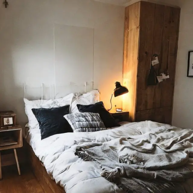 La chambre est un espace que j'affectionne beaucoup. Le style cocooning aussi. Donc pour ce nouvel essai, je me suis dit que j'allais tester ce type de déco simple et douillet. Et pour corser les choses, je ne voulais pas de blanc qui est souvent synonyme de douceur. Cette couleur est fréquemment utilisée dans une chambre à coucher car elle est lumineuse, neutre et moderne. Un choix simple mais qui contribue facilement à la création d'une ambiance cosy.