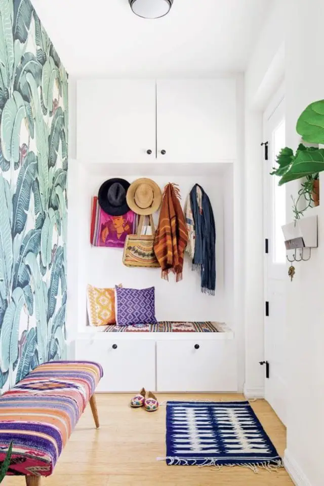 Le papier peint peur vous permettre de créer une entrée qui semble plus grande. Là aussi les revêtements clairs sont pratiques. On peut aussi opter pour des motifs en ton sur ton ont tendance à se faire oublier et donc ne vont pas écraser votre pièce. Les rayures verticales quant à elles vous donneront l'impression que le plafond est plus haut qu'il ne l'est réellement.