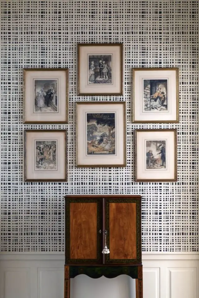 Un soubassement vous permettra d'associer peinture (unie) et motifs. Le soubassement peut être peint ou il peut être en papier peint (même si actuellement c'est plus rare). Choisissez d'abord un modèle de papier peint qui vous plait et ensuite trouvez la teinte de peinture. Pas l'inverse, cela vous simplifiera la vie. Il y a bien plus de choix quant aux teintes de peinture.