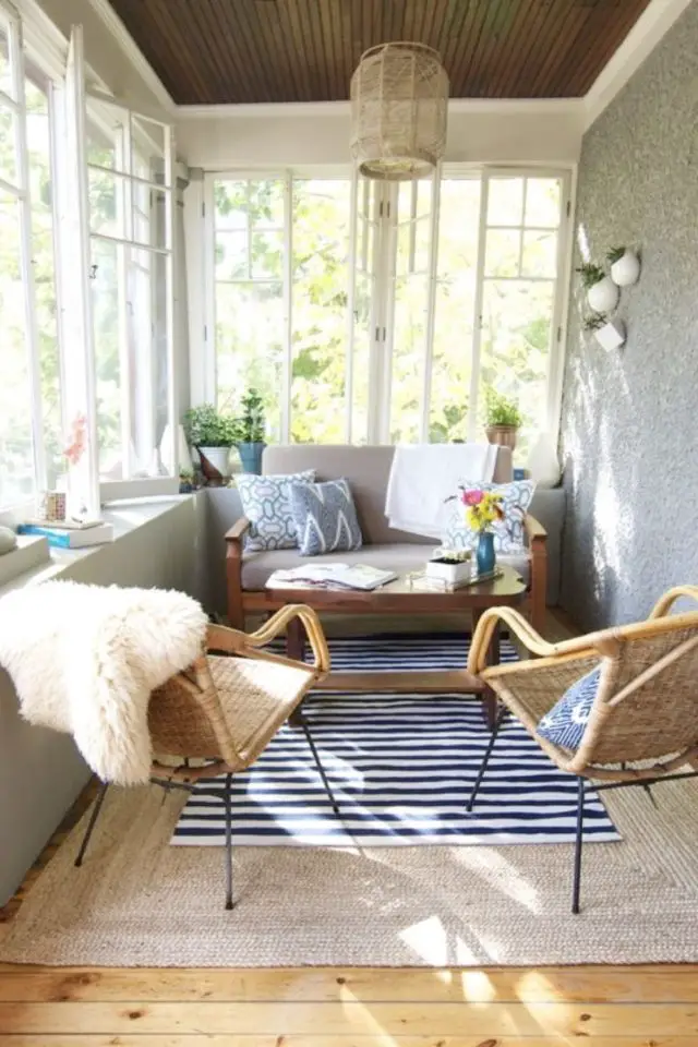 En vivant en Asie, je suis assez déphasée quant aux changements de saisons en France. J'ai eu un hiver cette année en étant au Laos mais les températures sont tout de même plus clémentes que par chez vous et globalement, j'ai quand même passé toutes mes journées dehors. Vivre en extérieur est pour nous une composante essentielle de notre bien-être. On s'en est rendu compte assez vite quand on a changé de vie. Et par conséquent, souvent, je me demande comment transposer ça dans la déco, dans votre quotidien. Et l'une des réponses les plus évidentes c'est la véranda. On en avait une dans le dernier appartement que l'on a eu en France et on passait le plus claire de notre temps dedans. C'est un espace plus lumineux. C'est un espace entre intérieur et extérieur. En attendant de pouvoir profiter pleinement de votre jardin et / ou votre terrasse au printemps, pourquoi ne pas ré-investir la véranda. La considérer comme une pièce de vie à part entière. Même si son isolation est un peu limite, rien ne vous empêche d'y prendre le café après le repas du midi, d'y lire un bon bouquin le week-end, y mettre des plantes pour créer un jardin d'hiver. C'est parfait pour profiter de la lumière naturelle qui rebooste le moral.