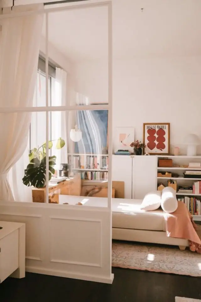 - Opter pour une verrière moderne ou l'installation de claustras pour séparer l'entrée du salon;