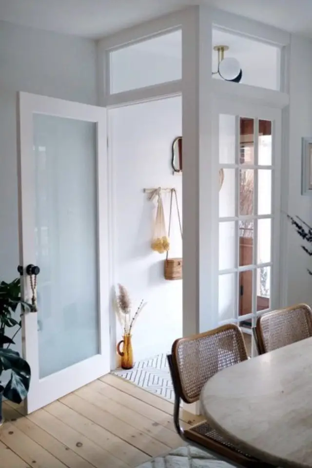 - Créer un sas avec une porte vitrée et des vitres fixes (pour éviter de manquer de luminosité et perdre trop le sentiment d'espace);