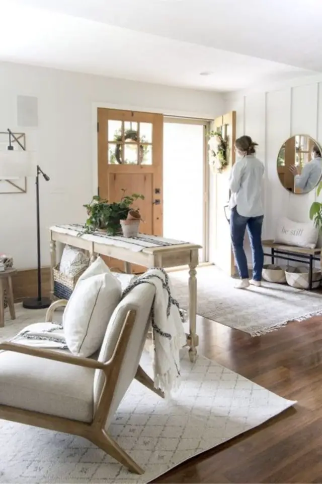 - Placer un meuble à proximité de la porte d'entrée pour créer une différence entre les deux espaces;
