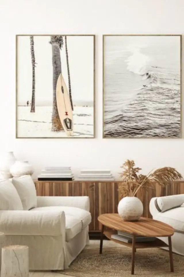 Autre élément qui compose la déco au dessus du buffet, c'est la déco murale. Quoi de mieux qu'un joli poster encadré avec un paysage de bord de mer pour parfaire la déco de votre pièce de vie? Il suffit de jeter un oeil au buffet pour se sentir presque en vacances. On peut aussi compter sur les photos prises lors de vos dernières vacances à la mer. Décors de plage, chalets, mer déchainée, phares... Les inspirations sont nombreuses. Si votre rêve est de passer des vacances sur une île paradisiaque, les palmiers sont votre allié!