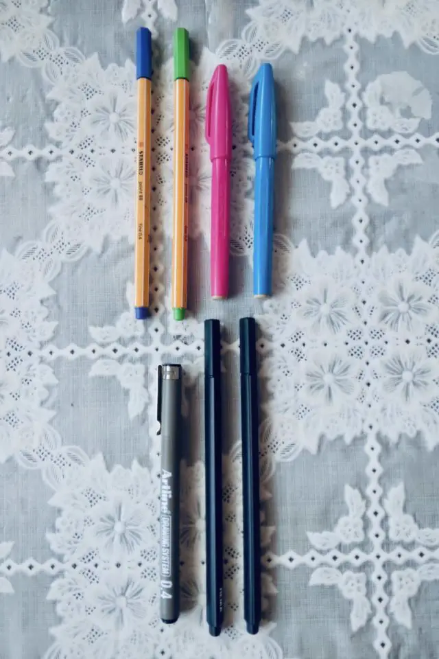 - Des feutres classiques + des feutres de couleurs avec différentes pointes