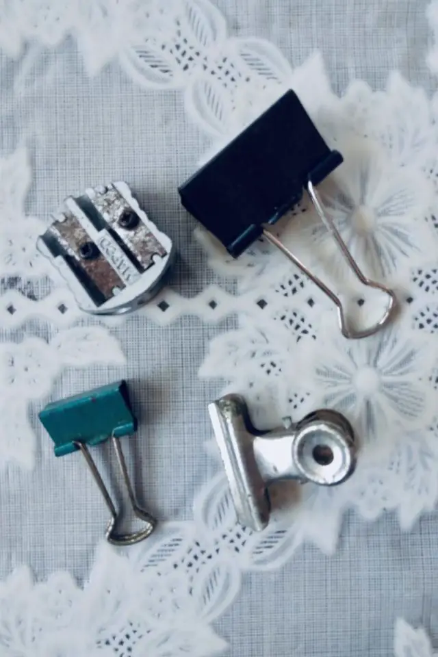 - des pinces pour éviter que les feuilles bougent quand j'écris et je dessine à côté d'un ventilateur