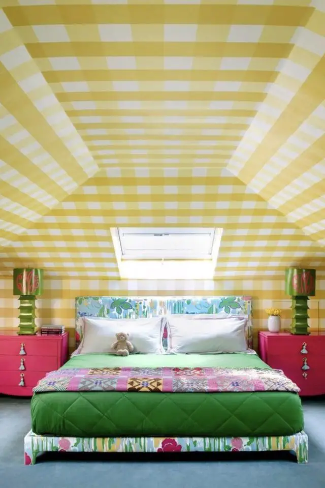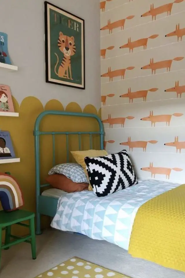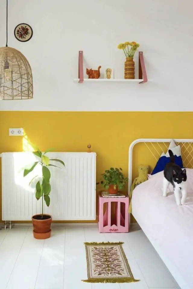 Pour les enfants plus grands, le jaune est une couleur sympa. C'est une couleur intemporelle qui ne vieilli pas mal et qui ne passe pas de mode. Avec du blanc, des meubles "d'adultes" et un décor entre chambre à coucher et salon, cela peut plaire à votre enfant. On peut aussi partir sur un ensemble plus joyeux et éclectique avec des meubles relookés, du papier peint à motifs, des couleurs franches. Un choix plus audacieux.