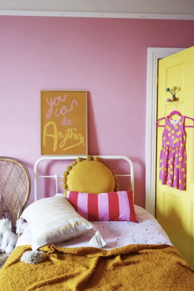 Chambre d'enfant en jaune et rose