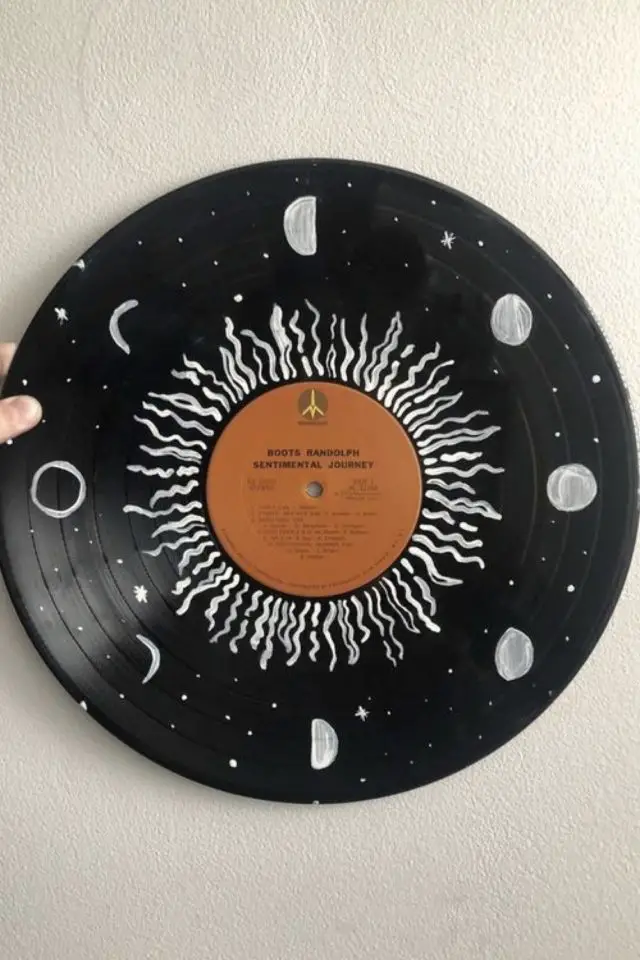 Autre transformation qui me plait beaucoup pour les disques vinyles: la peinture. Le disque sert de support à votre imagination créative. Avant de commencer à peindre, nettoyez votre disque correctement. S'il est ancien et qu'il a été stocké des années dans un carton, il sera sûrement poussiéreux. Ensuite, il est possible d'utiliser de la peinture acrylique ou encore des Posca pour les détails.
