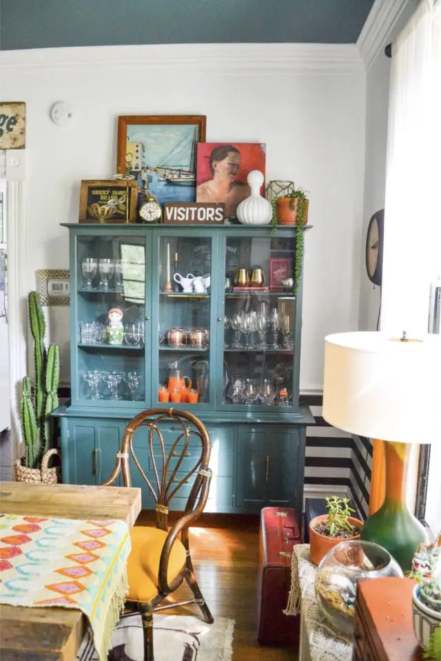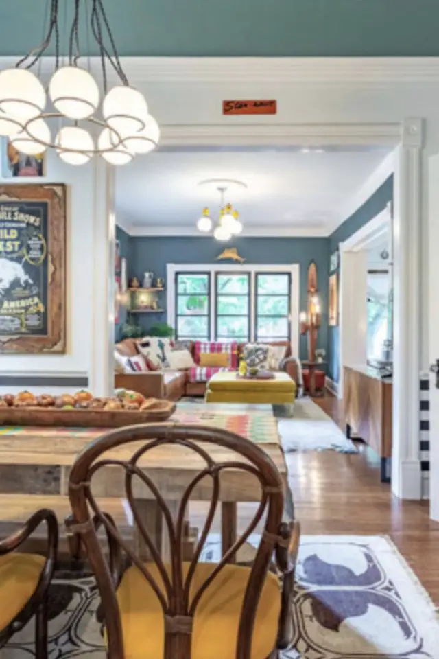 J'ai l'impression qu'il y a une éternité que je vous ai proposé une visite déco même si ce n'est pas le cas. C'est probablement parce qu'entre temps j'ai changé de pays et je suis dans un monde radicalement différent. Il arrive que le pays dans lequel je me trouve m'inspire ou me donne des envies particulières en matière de déco. Et comme en ce moment, je suis en Inde, j'avais envie de couleurs, de bonne humeur, de mélange de styles. Et quoi de mieux que le style éclectique pour répondre à mes envies? Alors aujourd'hui, je ne vous propose pas une visite déco en Inde (il y en a une ici), mais on part en Caroline du nord pour visiter une maison joyeuse, personnelle, pleine de vie. J'espère qu'elle vous inspirera autant que moi!