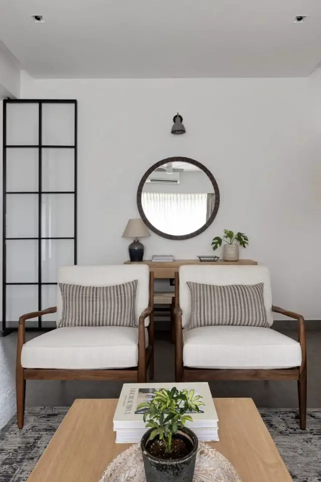 Avant de commencer, je voulais dire quelques mots à propos de Sunita Yogesh Studio qui est à l'origine de ce projet. Cette entreprise de design d'intérieur est basée à Chennai. Dans chacun de ses projets la designer apporte une touche éclectique, moderne et cosy. Elle porte une attention à chaque détail, chaque couleur, chaque matériaux. Ca n'a pas été facile de choisir un de ses projets parmi les autres. Tous ont éveillé chez moi beaucoup de sérénité et de douceur. Je vous invite donc à visiter son site pour trouver de l'inspiration. Ici, je vous propose de mieux comprendre comment marche la jolie harmonie slow du projet Oakwood, un appartement madrassien. (C'est vraiment dommage que je passe toujours en coup de vent à Chennai, j'aurai adoré la rencontrer en IRL!)