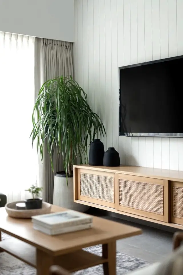 En plus de la couleur, il y a un travail qui a été fait sur les matériaux. Eux aussi contribuent à cette idée d'équilibre que j'affectionne tant dans les intérieurs slow living. Les matériaux utilisés se caractérisent de plusieurs manières: