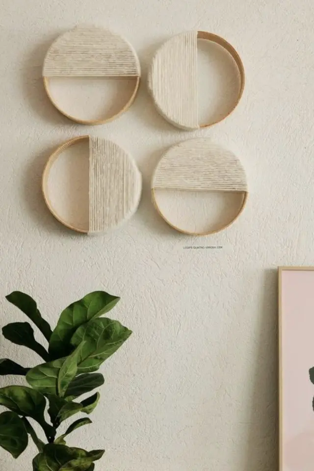 - Assembler des dessous de plat, des set de table et des plateau en fibres naturelles tressées pour créer un décor mural tendance