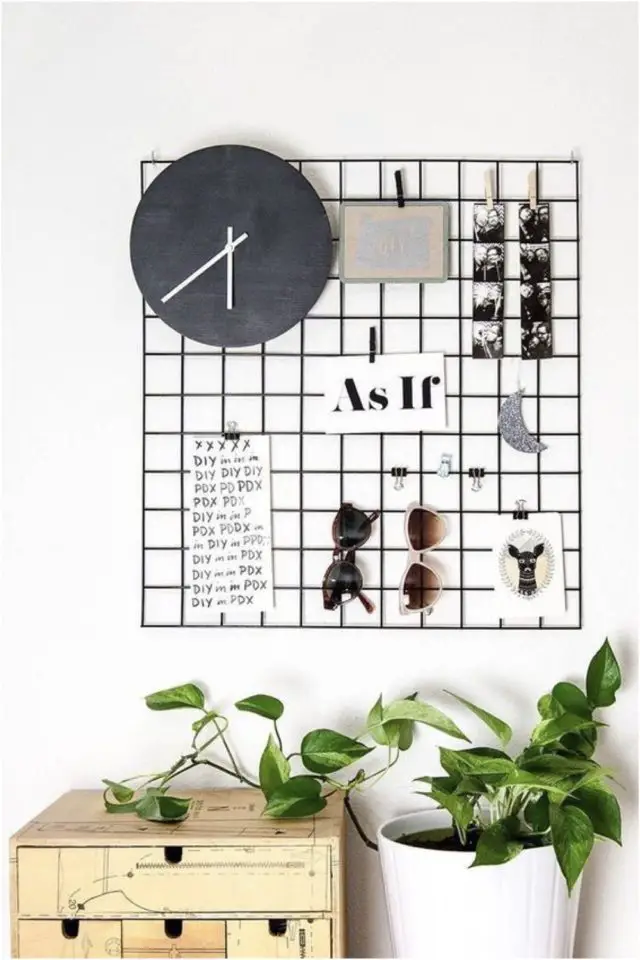 - Faire un moodboard avec un vieux cadre et du grillage à poule