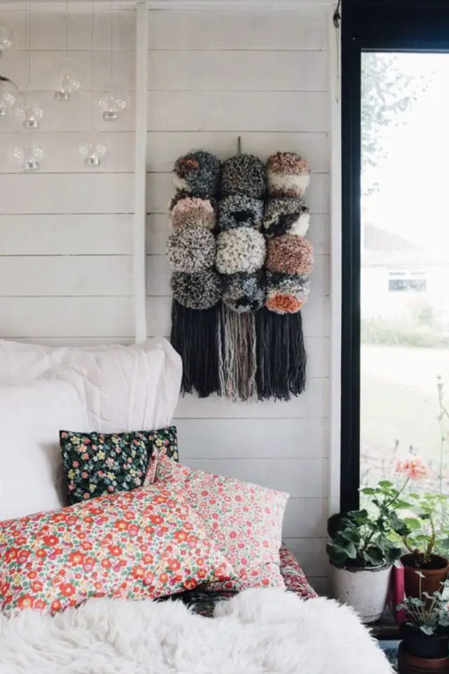 - Créer une déco murale avec des pompons colorés