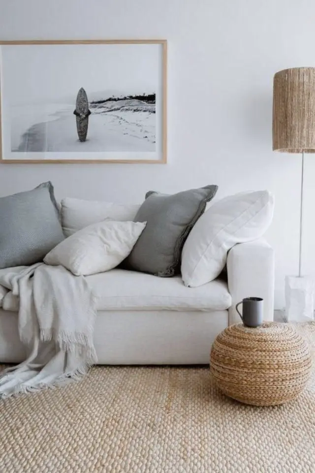 Je reste dans l'idée d'accessoires qui cont vous permettre de sublimer votre décor bord de mer / beach house avec l'idée de textile. De nombreux accessoires textiles peuvent trouver leur place dans votre déco: le tapis en jute, les coussins colorés, le plaid en laine pour les soirées un peu plus fraîches. Néanmoins, il y a un accessoire textile qui à mes yeux est indispensable, c'est l'habillage de vos fenêtres voire de vos baies vitrées. Au choix: de grands voilages ou des stores bateaux / enrouleurs. Ils seront dans des textiles naturels comme du lin lavé et surtout dans des tonalités neutres et claires. Cela va jouer sur la luminosité naturelle de la pièce mais aussi vous aider à créer un cadre plus cosy et élégant.