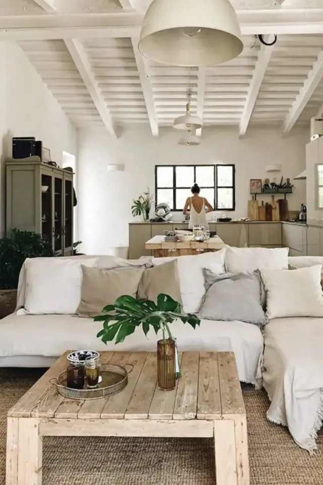 Dans le salon par exemple, le canapé ne sera pas tourné vers l'écran de télévision. Canapés et fauteuils se feront face pour privilégier la discussion. Dans la cuisine, on va créer un vrai espace de vie et d'échange autour de l'îlot central. Dans ce type de décor, on va moins porter d'attention aux détails et plus à la manière dont tout le monde va vivre et interagir dans l'espace. La simplicité du décor va laisser de la place aux moment passés ensemble.