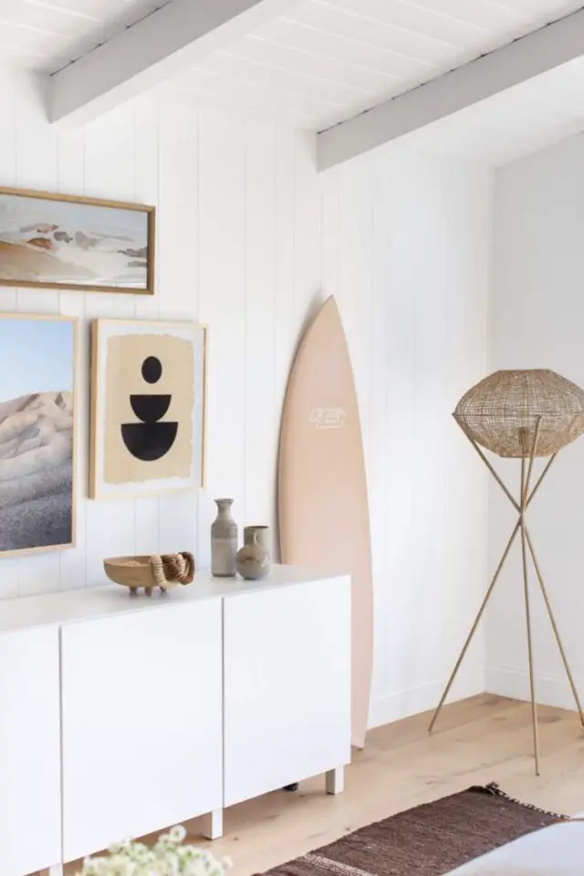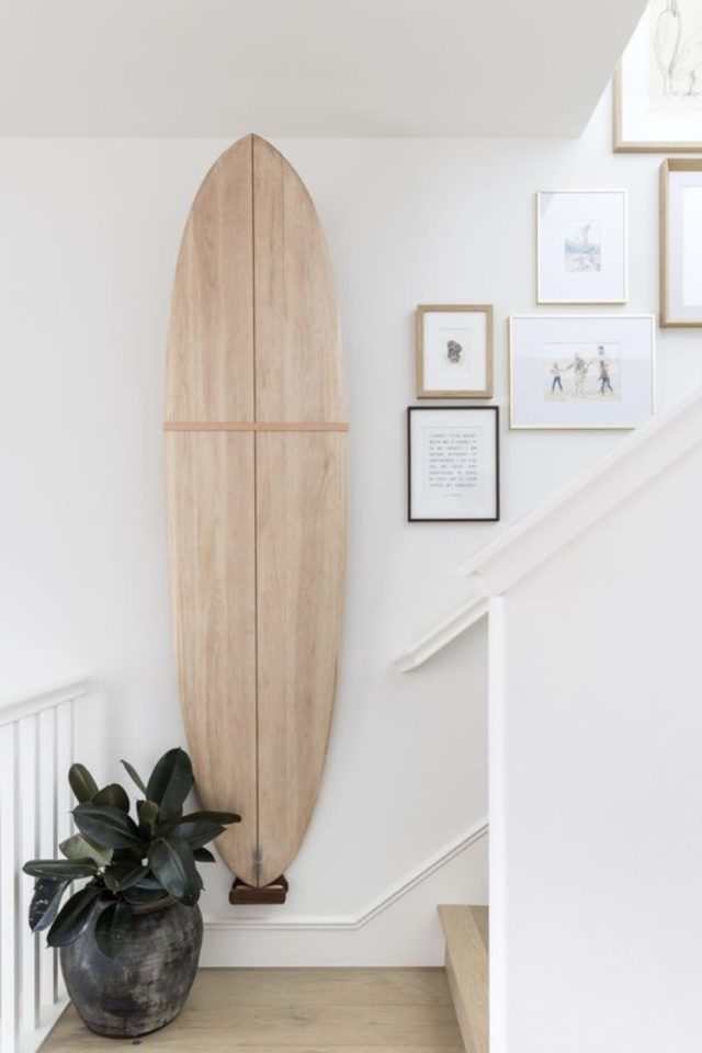 - La planche de surf ou la pagaie de paddle qui trône au milieu de la pièce à vivre deviennent des accessoires décoratifs à part entière.