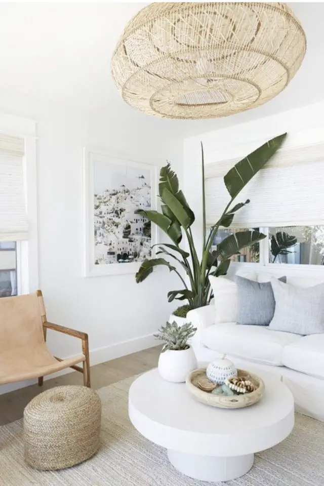 Le verre se retrouvera essentiellement à travers les luminaires mais aussi les contenants divers (pour vos coquillages / bouquet de fleurs...). La transparence du verre va dans le même sens que les voilages clairs. On va chercher à ne pas entraver la lumière naturelle. Les fibres tressées quant à elles vont facilement faire référence au chapeau de plage. On peut utiliser du rotin, de l'osier, du bambou... Et comme c'est tendance depuis une paire d'années, c'est assez facile de trouver de tels accessoires dans le commerce.