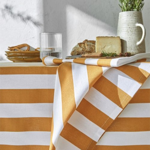 Parce que pour créer une nouvelle déco de table, il n'est pas nécessaire de changer l'intégralité de sa vaisselle, j'ai eu envie de vous proposer une sélection de nappe dans l'air du temps et en promo. On u trouve des motifs imprimés comme des fleurs, des feuilles tropicales, des rayures (parfaites pour créer un esprit French Riviera à table). On y trouve des textiles naturels comme le lin et le coton. Il y a aussi dans ma sélection des nappes unies avec de belles couleurs à la mode notamment le terracotta dont je me lasse difficilement. Je trouve que cette couleur est parfaite pour réchauffer l'atmosphère d'un repas et offrir un côté estival à la table.