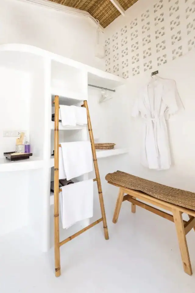 La Thaïlande est un pays étonnant. C'est un pays qui vit avec son temps et comme le disais en intro, c'est un pays qui fait tout pour être facile à vivre. Si vous avez peur du décalage culturel, j'ai la maison parfaite pour vous puisqu'elle est décorée dans un style bord de mer et méditerranéen. C'est assez étonnant, on ne s'attend pas à cela en allant en Asie. Pourtant je suis sous le charme de la douceur de vivre qui se dégage de cette villa. On a beaucoup de blanc, une décoration murale simple et synonyme de vacances, des poutres apparentes cérusées, de petites touches boisées lumineuses. Rien de mieux pour se sentir en vacances!